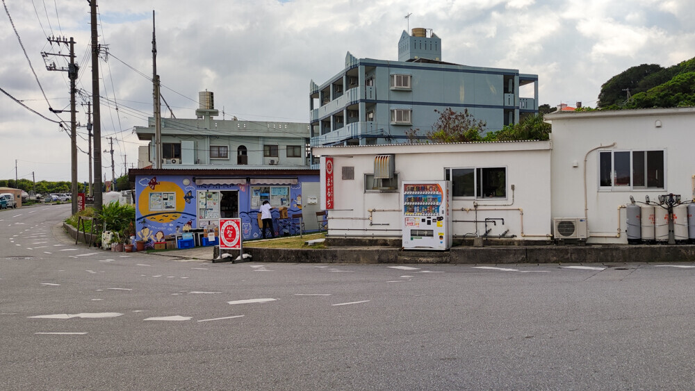 右側の角には沖縄そばの店と、あざま共同売店がありました。