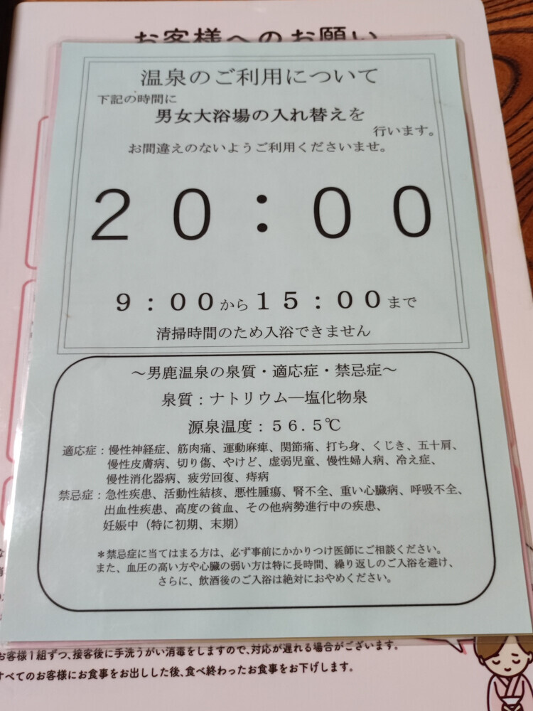 露天風呂はなく内湯。20時に男女大浴場の入れ替えがありました。