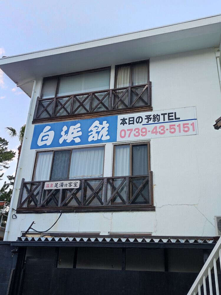 白良浜を臨む場所にあります。冬季だったのでオフシーズン。宿泊費用は素泊まりで9000円くらいでした。